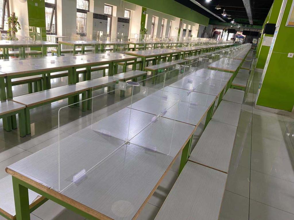 为改善食堂就餐环境并满足防疫相关要求,双校区各食堂于2月27日——3月1日期间将食堂桌面普通挡板全部更换为亚克力透明挡板。对于食堂员工完成了疫情防控、食品安全、规范服务等岗前培训并开展了实景演练,提升食堂食品安全工作水平,提高疫情防控突发事件应急处置能力。