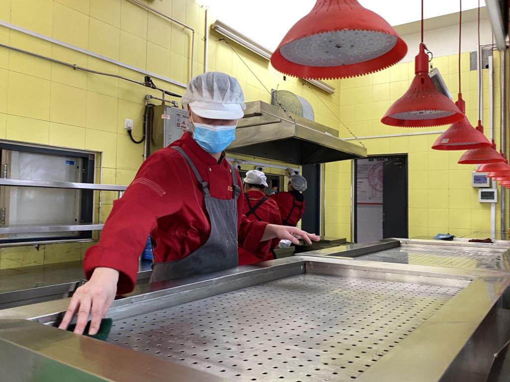 双校区提前精心部署,利用寒假时间安排工作人员对各食堂厨房机械电路设备等进行检修,并进行烟道清洗、燃气管道检查、蚊虫消杀、餐桌椅维修等工作,彻底消除食堂食品卫生和生产安全隐患。双校区各食堂对食堂各个区域进行彻底地卫生清理,如食堂炉灶、消毒橱柜、下水槽及所有餐具、餐桌椅等进行全面清洗消毒,确保就餐环境安全。