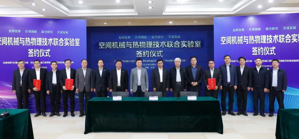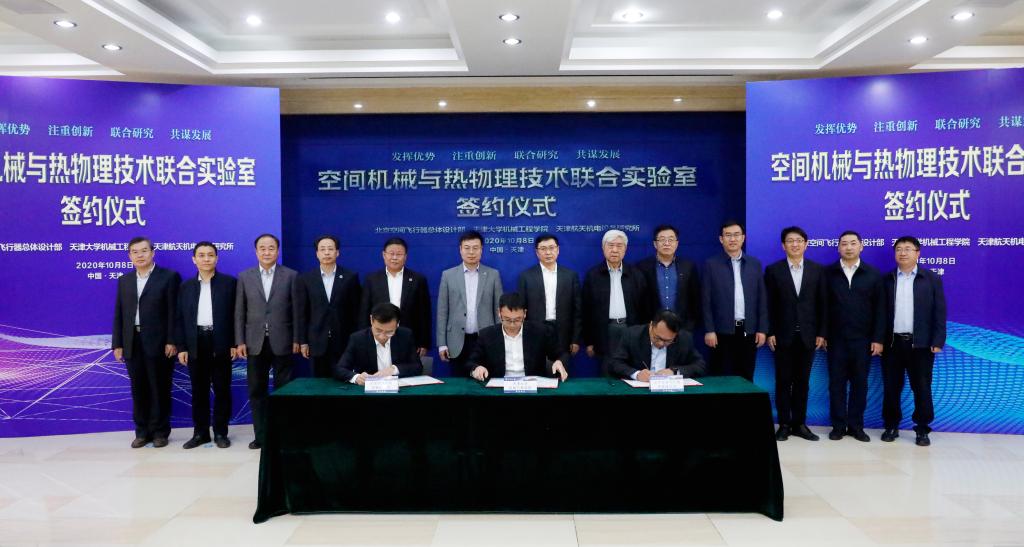 本站讯(记者赵晖 摄影唐蒙)10月8日,北京空间飞行器总体设计部、天津大学机械工程学院、天津航天机电设备研究所在天津大学卫津路校区签署合作协议共建空间机械与热物理技术联合实验室。中国工程院院士、天津大学校长金东寒,中国空间技术研究院(航天五院)院长张洪太,中国工程院院士戚发轫,中国工程院院士、航天五院总工程师周志成出席签约仪式。