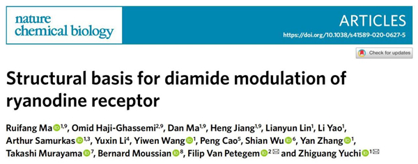 本站讯 2020年8月17日,天津大学尉迟之光团队和加拿大英属哥伦比亚大学Filip Van Petegem团队合作在Nature Chemical Biology发表了题为Structural basis for diamide modulation of ryanodine receptor的研究论文,首次阐明了双酰胺类药剂与鱼尼丁受体结合的结构基础,为进一步理解双酰胺的作用机理以及抗药性产生的机制提供了重要理论依据。