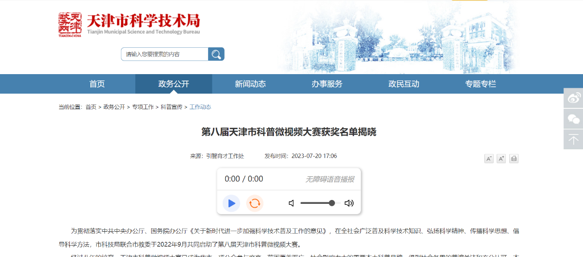 ▲图 1 大赛公告及获奖名单截图https://kxjs.tj.gov.cn/ZWGK4143/ZXGZ7816/kpxc/gzdt12/202307/t20230720_6357965.html