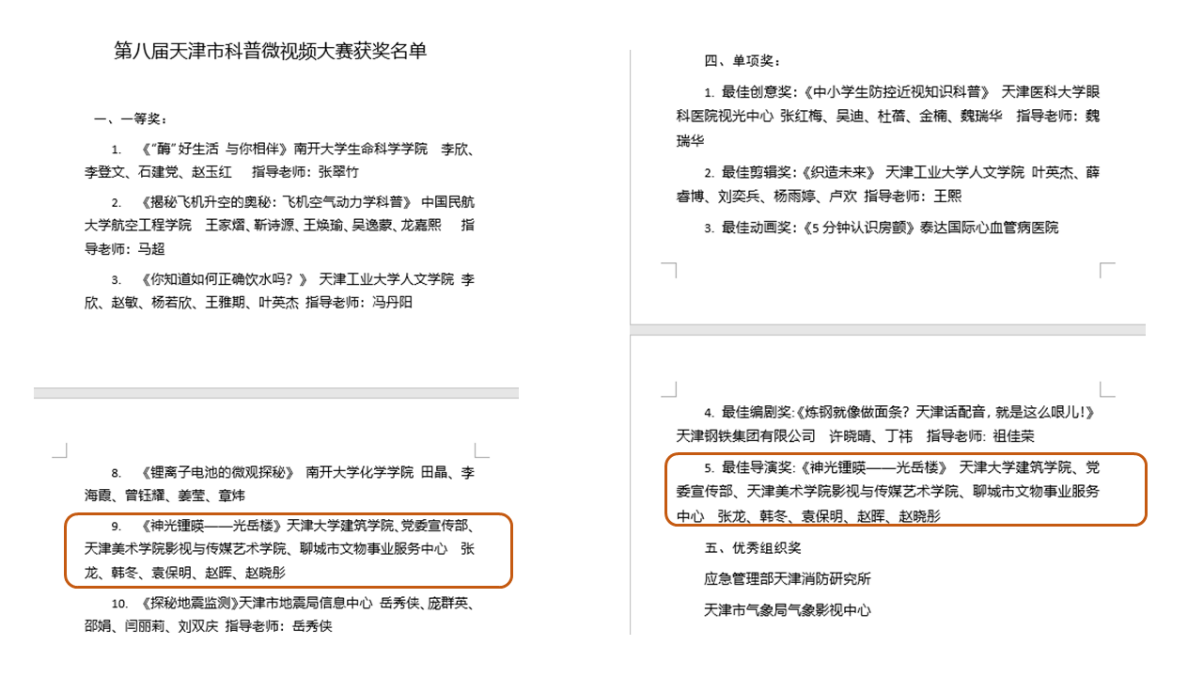 本站讯 近日,天津大学(建筑历史与遗产保护科普基地)、天津美术学院与聊城市文物事业服务中心联合推出的科普短片《神光锺暎——光岳楼》获得第八届天津市科普微视频大赛一等奖、最佳导演奖,并将选送至全国科普微视频大赛参加激烈角逐。
