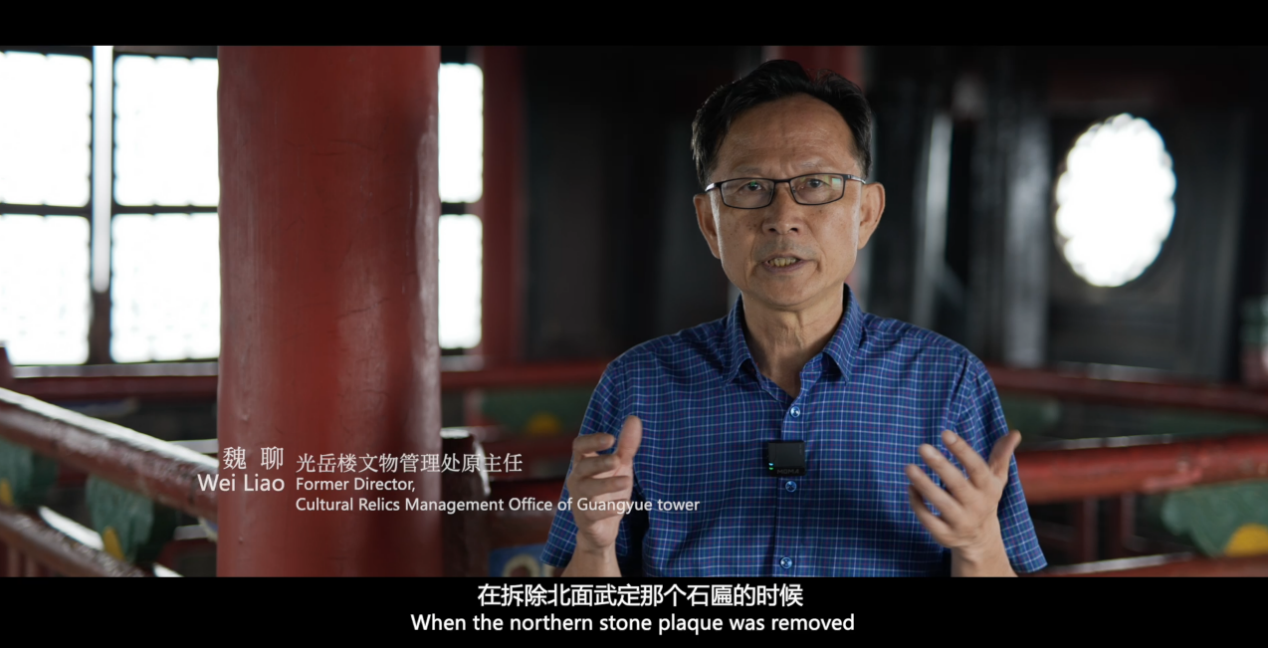 ▲图 9光岳楼管理处魏主任在短片中介绍题记的发现过程