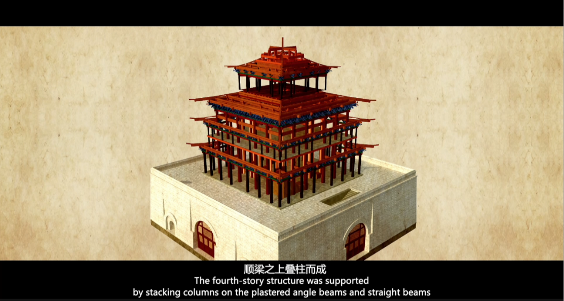 ▲图 5参赛短片《神光锺暎——光岳楼》建筑结构动画展示