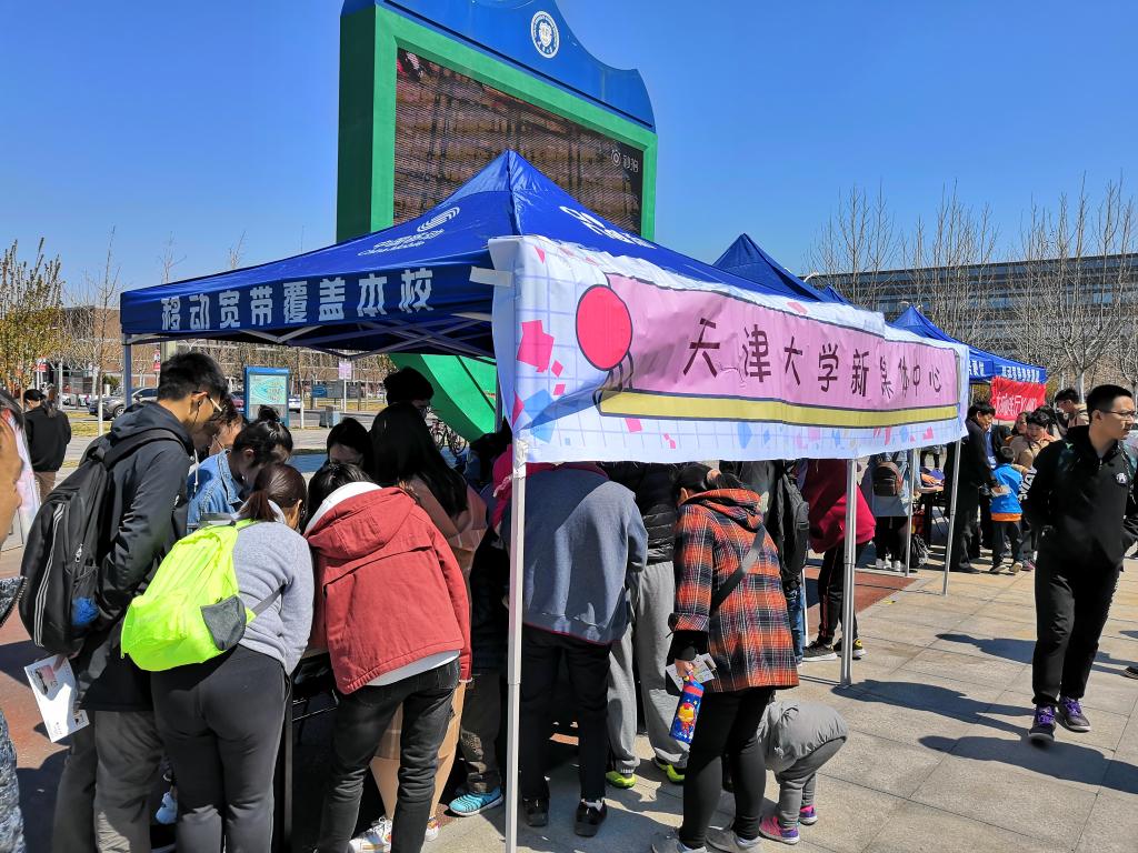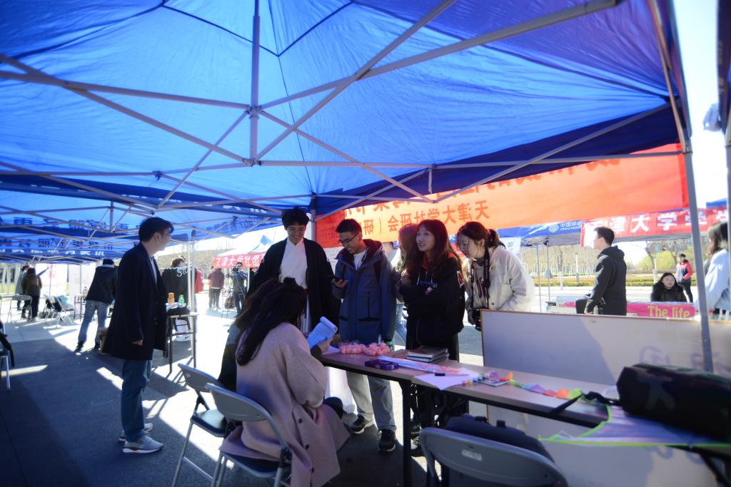 太雷广场上“追梦新时代 强国新青年”学生社团互动展示进行得热火朝天,显得热闹非凡。各个学生社团纷纷摆上特色产品、文化纪念品,和游客们积极互动,各种竞猜游戏、许愿活动、集赞奖品兑换异彩纷呈,充分向游客们展示了天大学子蓬勃的青春活力和待客热情。