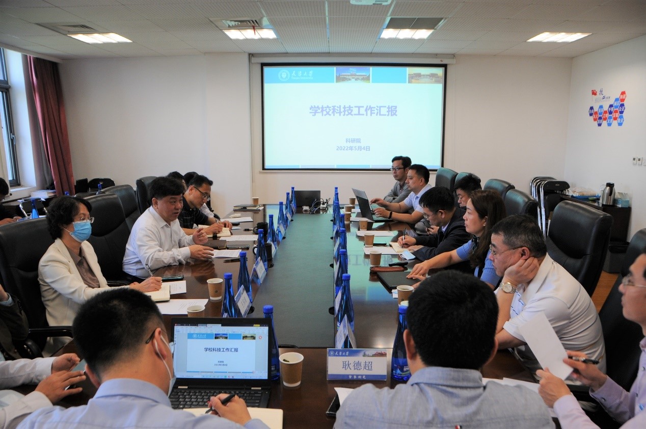 科研院院长王天友介绍了学校科技工作的总体情况和下一步工作的思考,就学校在重大项目组织、科技领军人才培育、青年人才多维度的支持、专职科研队伍建设、建好学科交叉平台等情况作了详细的说明,表示科研院全体工作人员将全力服务好学院的科研工作,发挥好平台引才,项目育才的作用,以才引才,以业引才,推动学校科技工作和人才培养再上新台阶。