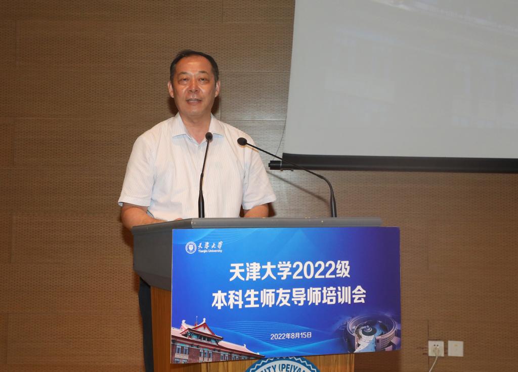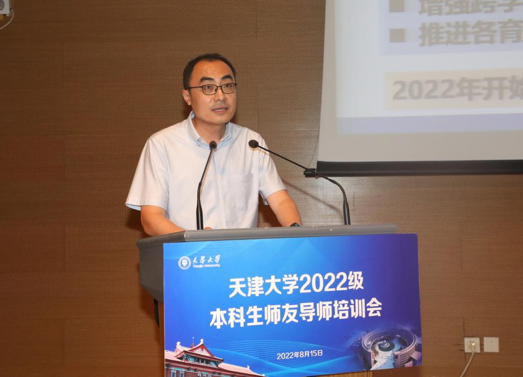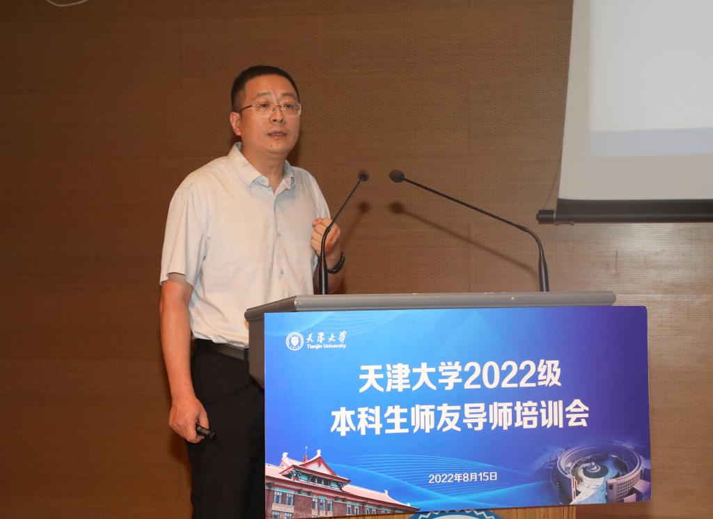8月15日,天津大学2022级本科生师友导师培训会在北洋园校区举行。校党委书记杨贤金出席会议并讲话,校党委副书记雷鸣主持,副校长郑刚出席。教工部、学工部、教务处、校团委等单位负责人,跨学院大类相关学院党组织书记、分管本科生教学工作负责人,各学院(部)分管学生工作负责人以及2022级本科生师友导师和辅导员参加。