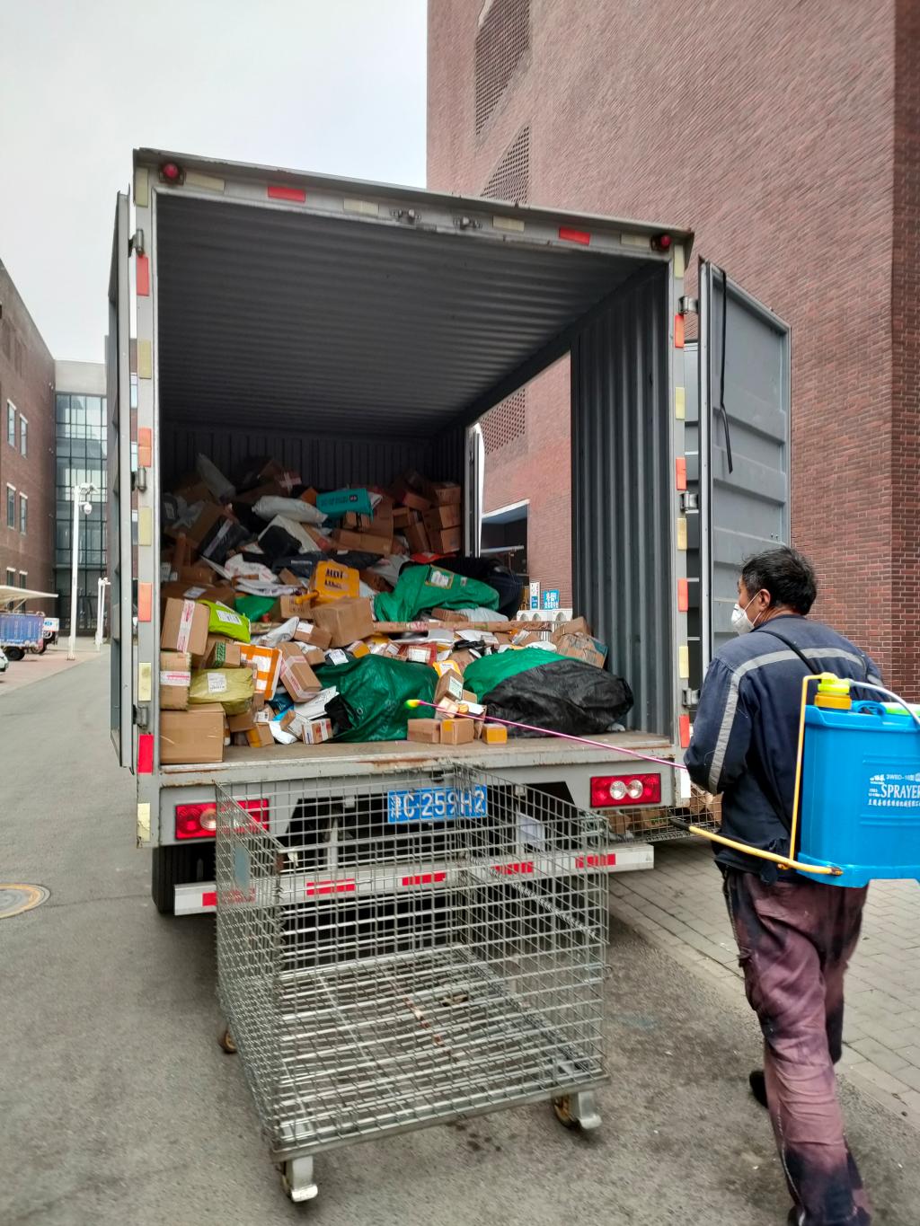 本站讯(记者 刘延俊 摄影 于福旺 后勤保障部供图)3月 23 日以来,学校按照天津市疫情防控指挥部及市教育两委要求,进入校园封闭管理状态。面对伴随小小快递潜藏的校外疫情传入风险,双校区分别根据校区情况,实施一系列有效措施,将疫情风险阻挡在校园之外,让同学们的快递领的安心。