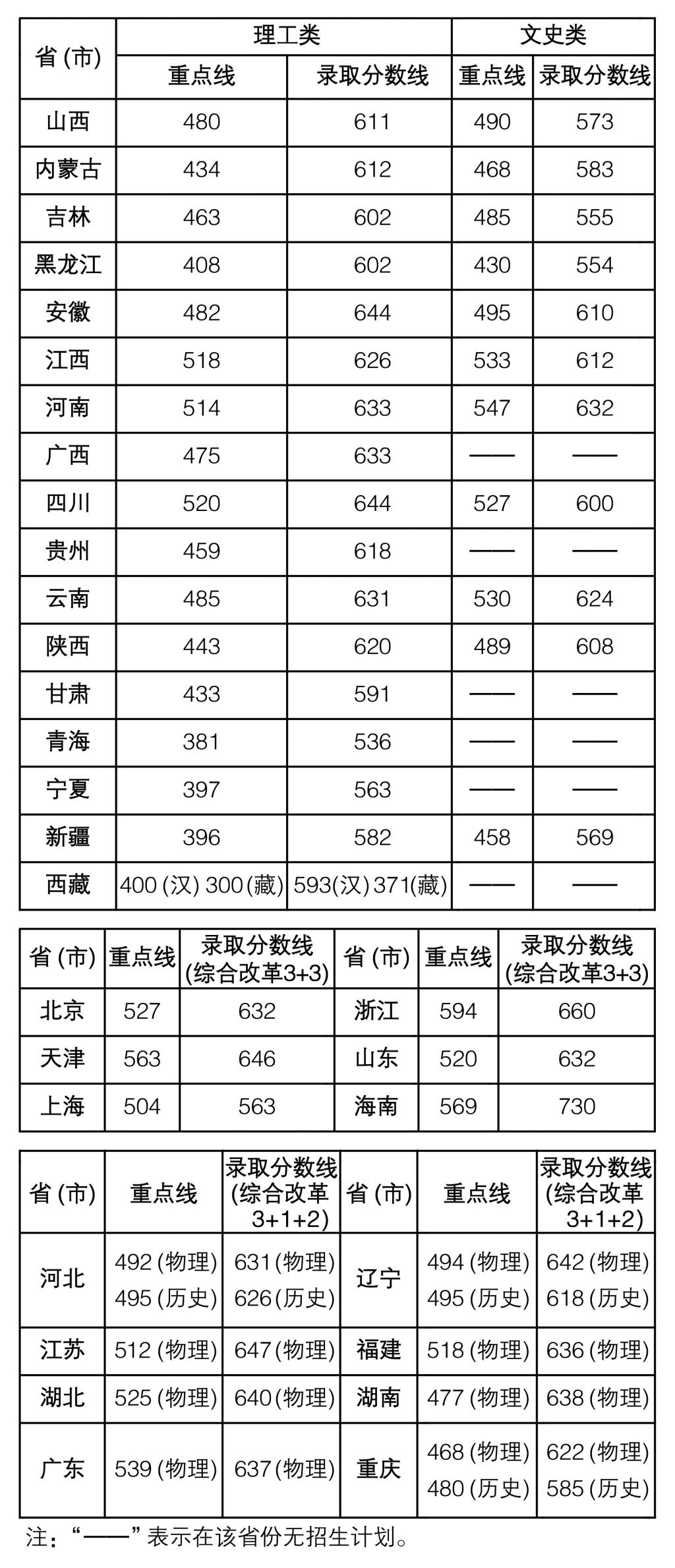 从录取结果看,我校在全国各省市生源十分充足,多数省份普通批次录取考生成绩位列本省当年总高考人数前1%,在广西、新疆、云南、贵州、河南等省市区稳居前0.5%。2023级学生志愿满足率再创新高,8个省份实现了全部考生一志愿录取,12个省份实现了前三志愿录取。在理科(或选考物理)招生省份,广东、湖北等17个省份录取考生最高位次提升,最高涨幅达61%;在浙江、黑龙江等18个省份录取最低位次实现稳步前进,其中河南、内蒙等7个省份前进幅度超过10%;在浙江、江苏等21个省份录取平均位次上升,其中天津、上海等12个省份录取平均位次上升幅度超过5%。文科(或选考历史)招生省份继续保持领先地位,吉林、河南、山西、云南、黑龙江等省份录取最低位次和平均位次均有提升,陕西、江西等省份最低位次上升幅度超过10%。