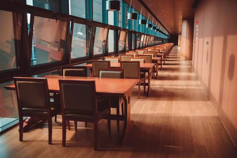 玻璃幕墙外树枝摇曳,阳光穿过白色百叶窗洒在木色的桌案上,栅格的光影斜打横梁,透过轻轻浮动的微尘,书籍整齐摆放在书柜间。透过建筑的浪漫和书本的厚重,你看身边那些奋笔疾书的同窗、角落里默默背书的少年、研究厢侃侃而谈的团队、影音欣赏室内神采飞扬的主讲人,就能明白天津大学“严谨治学”的校风早已浸润在图书馆的每一处角落,更浸润在每一个天大学子的内心深处。