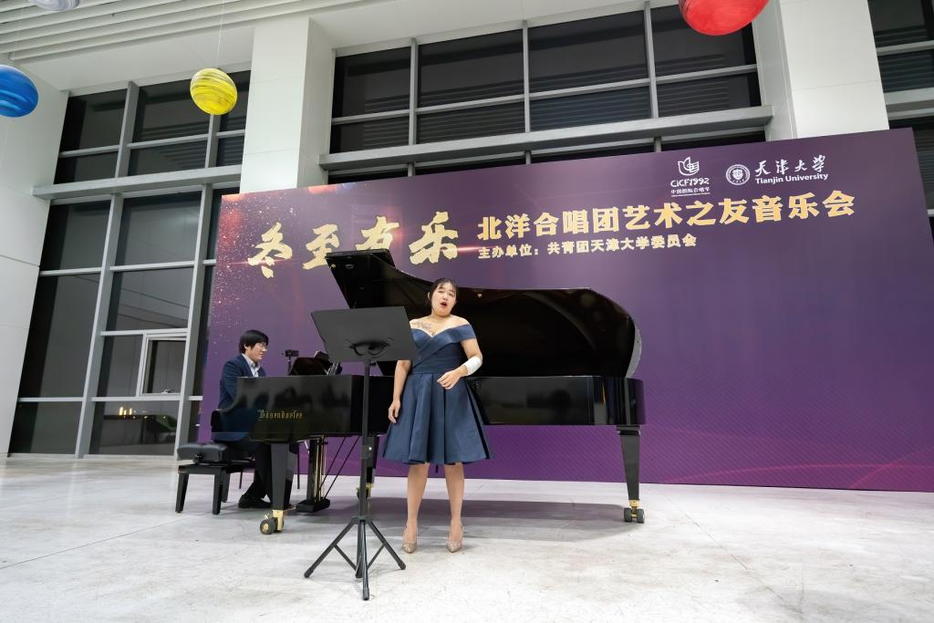 如果你的福袋里没有这张心心念念的“文化好礼”也不必灰心,因为——天大冬至夜,有“礼”更有“乐”!当天晚间,学校在大通学生中心举办了“冬至有乐”——艺术之友音乐会,邀请一众活跃在国内乐界的青年歌唱家、演奏家为师生呈现了一场精彩纷呈的艺术盛宴。作品演绎大多以“冬”为题:钢琴独奏《雪上足迹》,独唱《被遗忘的歌》,四重唱《渴望》……艺术家们精彩的表演博得了师生经久不绝的掌声。在最终的返场环节,工作人员为现场观众逐一发放了“天津大学北洋合唱团2022年校内音乐会”通票,让这场音乐会在惊喜、掌声和点赞欢呼中落下帷幕。“天津大学一向重视以精品文化活动实现‘美育浸润’”。 天津大学团委书记管虹表示,“今年年底,我们刚刚举办了第1001场周末音乐会,所以也希望通过1001张明年北洋合唱团音乐会通票的发放,营造浓厚的校园文化氛围,弘扬中华美育精神。”