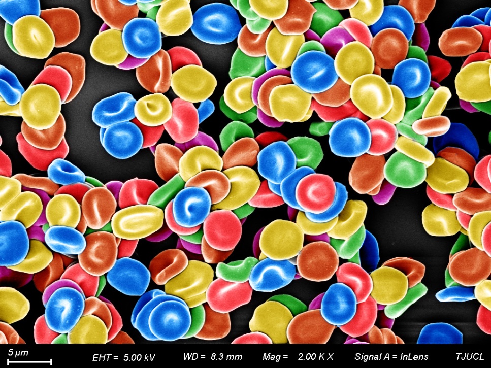 透过显微镜,微观材料犹如一幅幅瑰丽的画作,呈现出不一样的科学之美。固定脱水处理的红细胞,经过色彩晕染后像一粒粒七彩糖果;光学显微镜下,球墨铸铁呈现出放射状的花纹,宛如夏天池塘中宁静的荷叶;在对高熵合金沿着特定带轴的原子结构图进行渲染后,细密的编制结构如成熟的谷穗,又如丝线编织的衣料,令人不禁感叹,原来这大千世界归根到底是由这一个个原子编织而来。