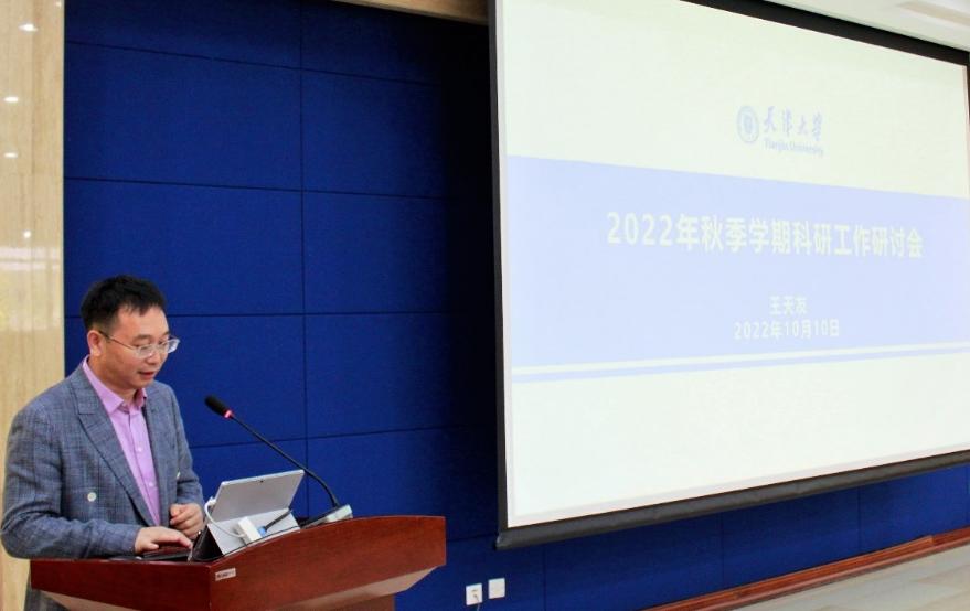 会上,科研院院长王天友报告了2022年1-9月学校科研工作进展情况,并结合中共中央办公厅、国务院办公厅印发的有关科技创新文件要求,以及教育部印发的《关于加强高校有组织科研推动高水平自立自强的若干意见》等有关文件精神,谈了下一阶段的贯彻落实举措并做了任务分解。