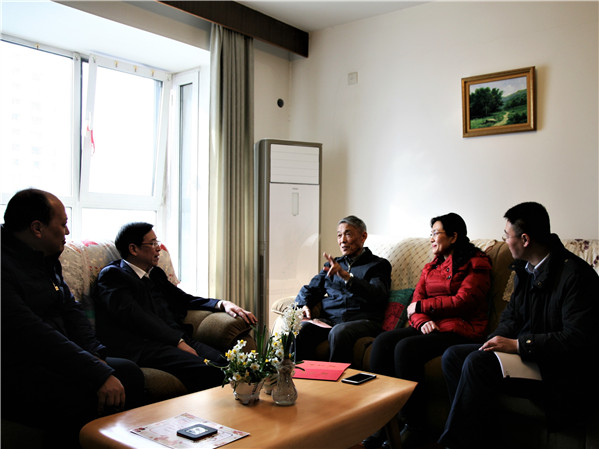 本站讯 1月30日,在新春佳节即将来临之际,校党委书记李家俊专程来到新园村教职工住宅小区,登门看望慰问天津市劳动模范、中国科学院院士、流体力学专家周恒教授。党办校办主任李武、工会常务副主席马桂秋、机械学院党委书记宋轶民等一同参加慰问活动,校院两级工会送去了劳模春节慰问信、慰问金和慰问品。