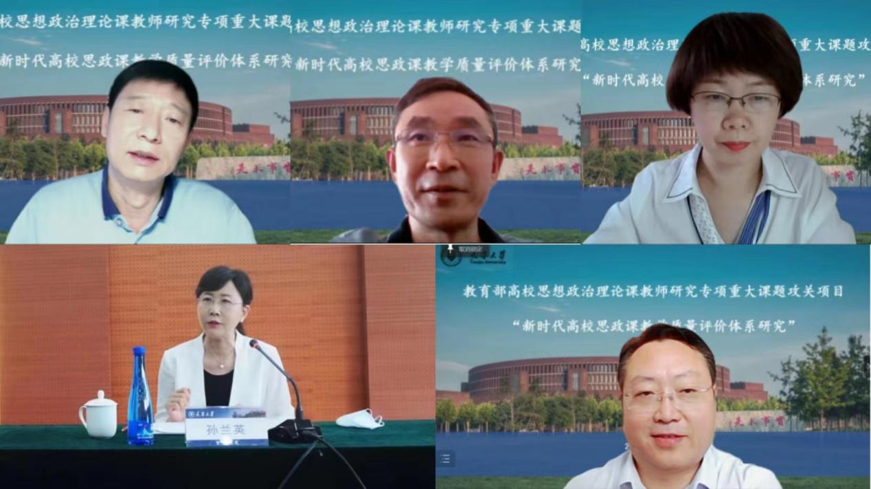 本站讯(通讯员 董玥欣 摄影 杨帆) 7月11日,教育部重大课题攻关项目“新时代高校 思政课教学质量评价体系研究”项目研讨会在天津大学召开。来自中国社会科学院、北京师范大学、中国人民大学、武汉大学、西安交通大学等20余所高校、科研院所、知名期刊的专家代表以线上线下的形式参会,围绕项目进行了研讨和评议。会议由天津大学马克思主义学院刘娜教授、人文社科处副主任刘俊卿主持。