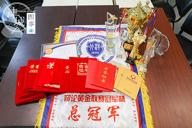 “40名队员参加了12个系列赛,32场辩论赛,其中获胜23场、拿到1个冠军、1个季军、1个八强、2个十六强、18个最佳辩手,胜率72%……”队长唐龙介绍说,这是天津大学辩论队在暑期的成绩。天大辩论队成立于1997年,是一支积淀深厚,历史悠久的队伍,单是证书与奖杯就堆满了一个桌子。