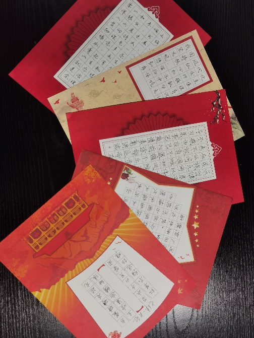 广大师生在集体学习交流的基础上,抄写讲话金句或诗词名言,一笔一划、工工整整,抒写对党的热爱和对国家的深情,通过抄写进一步加深了对习近平新时代中国特色社会主义理论的理解,表达了迎接党的二十大的喜悦心情。