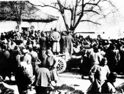 南下扩大宣讲团第四分团在目的地河北固安县进行抗日救亡宣传。 照片由天津大学校史馆提供