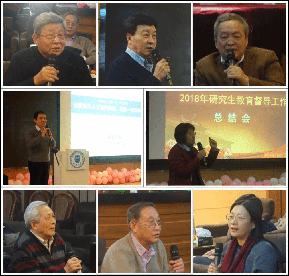 研究生院培养办公室对2018年研究生教育督导工作进行了总结汇报。各位督导组专家纷纷发言,畅谈在研究生教育督导工作中的心得体会,充分肯定了督导在提高我校研究生培养质量中发挥的积极作用,也对研究生院长期以来的工作表示认可,同时就如何进一步提高我校研究生教育水平提出了建议。
