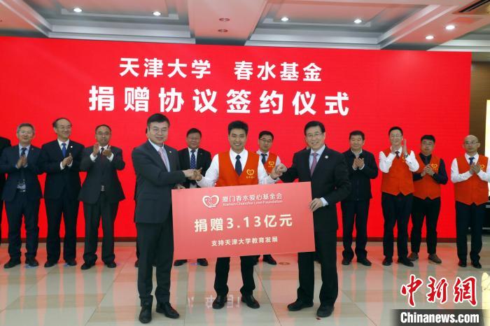 图为林松华当天通过“厦门春水爱心基金会”向天津大学捐赠3.13亿元人民币。 天津大学供图