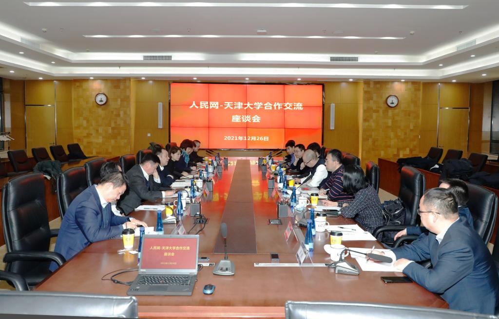本站讯(记者 刘延俊) 12月26日,天津大学与人民网合作交流座谈会在北洋园校区举行。校党委书记杨贤金与人民网党委书记、董事长、总裁叶蓁蓁一行就双方深入合作进行交流。