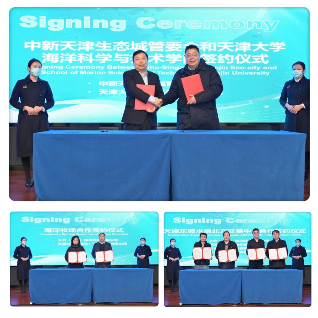 此次论坛筹备过程中,各方促成了教育和经济领域的多个合作项目。会议现场,中新天津生态城管理委员会与天津大学海洋科学与技术学院签署了关于“天津大学海洋学院-天津三生供应链海洋技术产业化联合研究中心”合作协议,天合(天津)海洋技术有限公司、天津东盟经贸合作促进会、马来西亚超越创新资源有限公司、天津永续新材料有限公司围绕构建天津东盟水果北方交易中心共同签署了四方战略合作协议,天合(天津)海洋技术有限公司与英豪丝路(青岛)海洋科技有限公司签署了“天津市海洋牧场示范项目”合作协议。