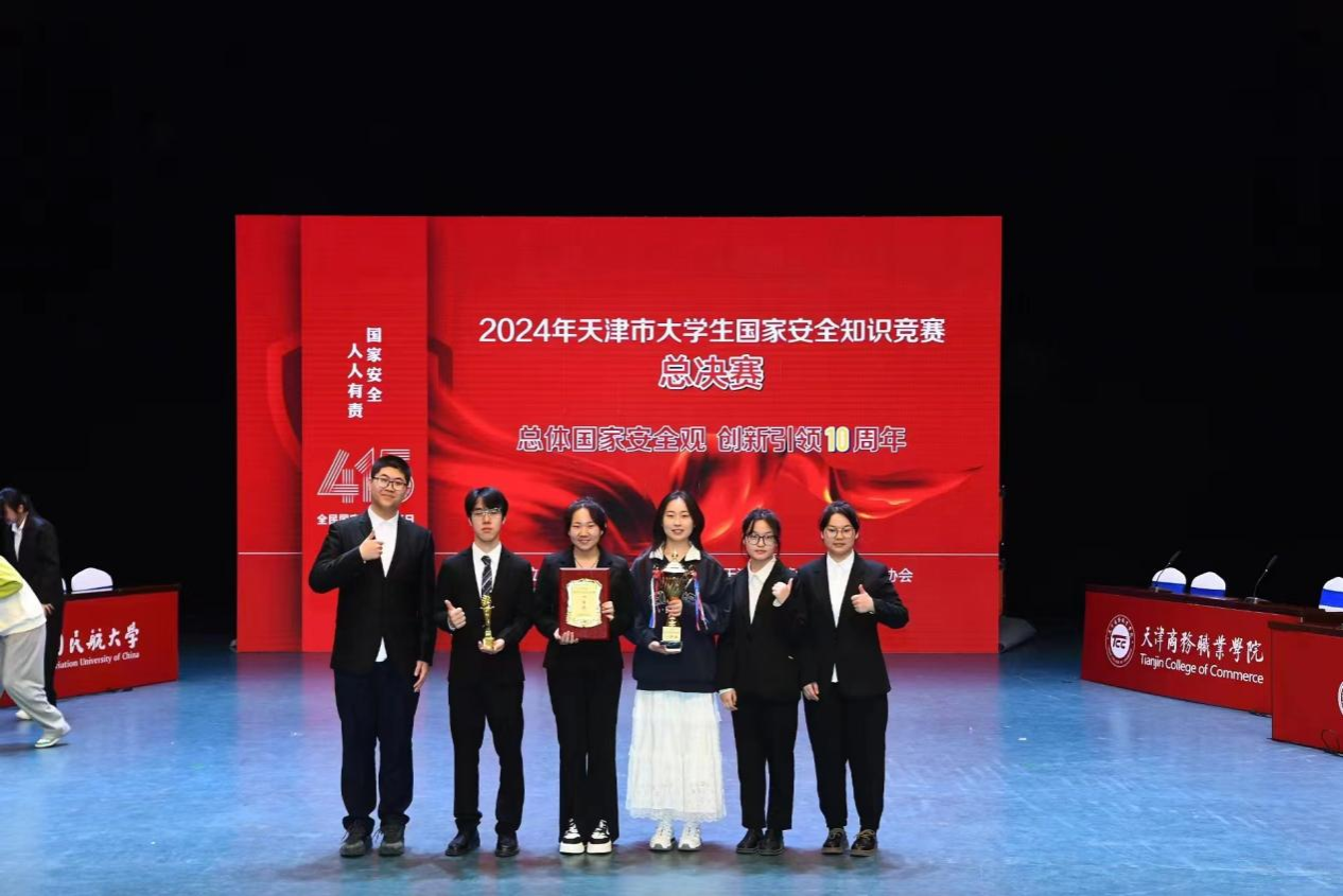 本站讯 2024年是习近平总书记提出总体国家安全观10周年,4月15日是第九个全民国家安全教育日。4月12日,2024年天津市大学生国家安全知识竞赛总决赛在天津理工大学成功举办。经过一个多月的不懈努力,由法学院本科生赵成都、陈安逸、丁宁、平佳琪、杨盛南组成的天津大学代表队荣获天津市高校国家安全知识竞赛总决赛一等奖,并将代表天津市参加全国赛。