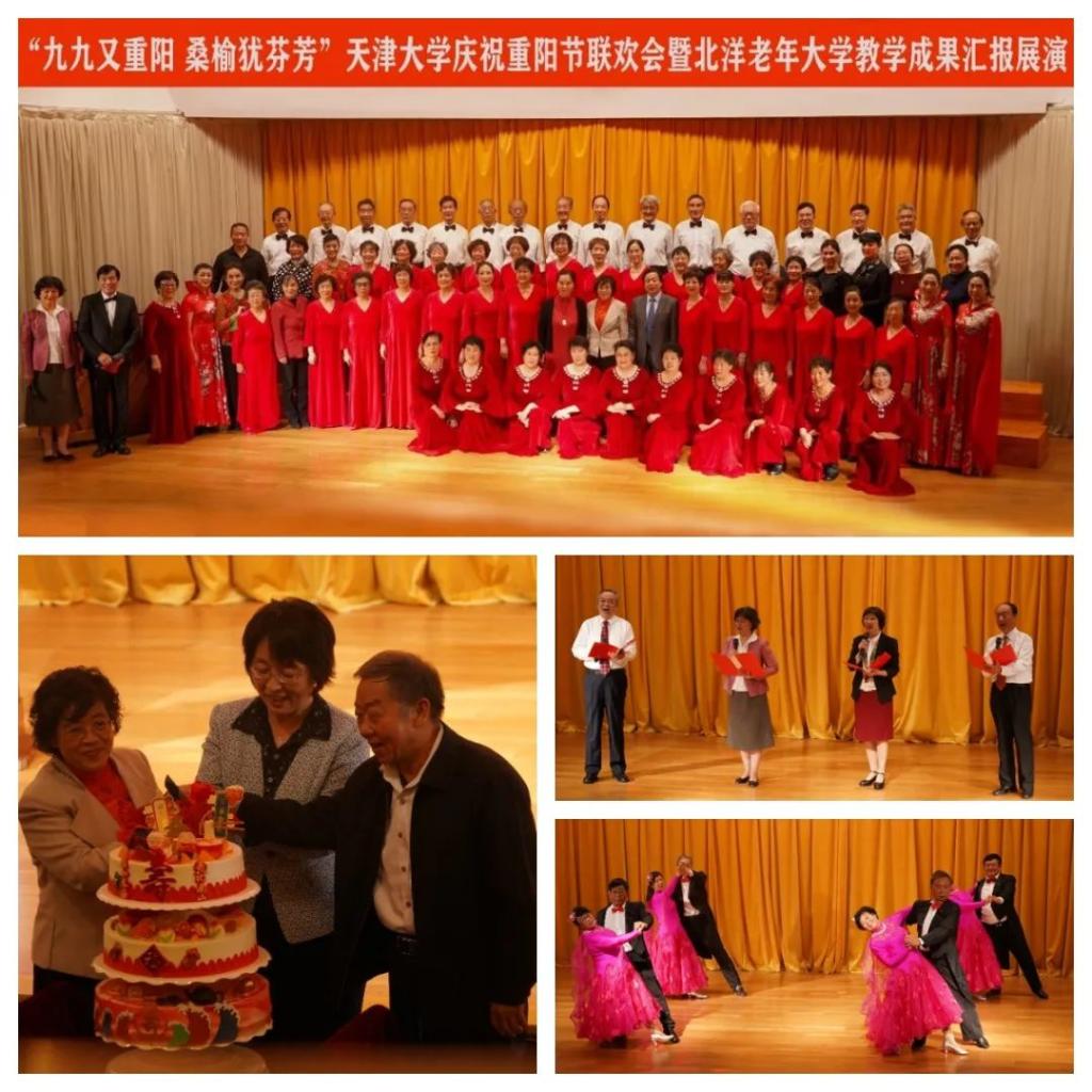 “喜迎重阳 送祝福展风采”系列活动,为老同志庆重阳送祝福。举办“九九又重阳 桑榆犹芳华”天津大学庆祝重阳节联欢会暨北洋老年大学教学成果汇报展演,学校领导、机关部处负责人为老同志们庆祝重阳节,为年满70周岁的老同志祝寿;青年学生、幼儿园和附小的小朋友为老同志们献上精彩的文艺节目;老同志们在舞台上载歌载舞,展现革命人永远是年轻的精神风貌。举办2023年天津大学离退休教职工“喜迎重阳 我的健康我做主”健步行活动,200余位老同志在卫津路校区体育场健步行,精神矍铄、老当益壮。