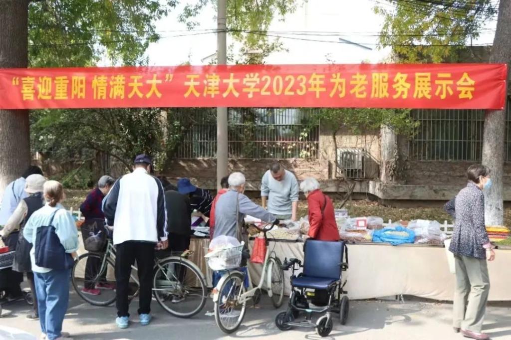 “喜迎重阳 情满天大”为老服务展示会,把优质商品和服务送到老同志身边。与和平区委老干部局、天津农垦集团有限公司等单位合作,将津门老字号企业、农垦慧生活、祥禾饽饽铺以及福建特产、干货、干果等食品和生活产品引入校园,把优惠、优质的服务带到老同志身边。