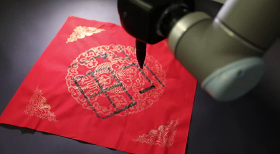 2021年春节前,天津大学神经工程团队的两个95后大学生戴着脑电帽,共同想象着一个汉字,他们的脑电信号被捕捉并转化为指令,握着毛笔的机械手臂在红纸上写出“福”字。