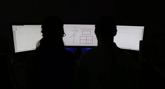 写汉字比写字母难得多。罗睿心和队友把“福”字按笔划拆解为多个部分,两人平均分配,她负责控制左边的偏旁和右边的口字,另一人负责福字右上的横和下面的田字。