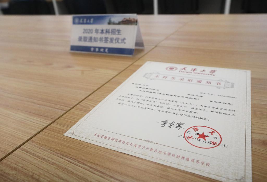 本站讯(记者 赵习钧 摄影 唐蒙)8月13日,天津大学2020年首批本科生录取通知书寄往全国各省市。当天下午,中国工程院院士、天津大学校长金东寒来到天津大学教务处招生办公室现场签发首批本科生录取通知书,并和工作人员一起,将通知书连同其他资料一同装进红红火火的“天大礼包”。这份沉甸甸的“天大礼包”将陆续寄送到寒窗数载的“新天大人”手中,作为最好的青春礼物。同学们还可以扫描礼包内的二维码,在线收看校长特别录制的视频寄语,感受来自天大的祝福和希冀。