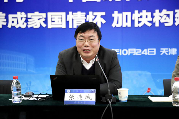 在下午的论坛中,各位专家以“立德树人养成家国情怀——加快构建高效思政工作体系”为主题展开讨论交流。天津大学校长助理肖松山从“家国情怀背后所蕴含的哲学思想和教育理念”一点展开,针对家国情怀提出的原因、家国情怀的含义、从理论和实践两方面汇报了“立德树人养成家国情怀的天大思考”。以人才培养为中心,以创造未来为发展方向,使教学科学研究、文化传承创新,社会服务和国际交流与合作形成高度关联的以人才培养为中心的系统,从哲学的思想或者哲学思维范式中探索出家国情怀背后蕴含的“格物致知、知行合一”理念。