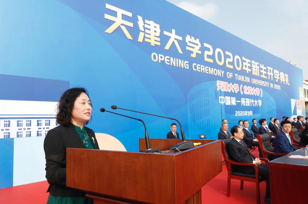 典礼上,教育学院院长闫广芬教授作为教师代表发言。她讲到,身为天大学子,要涵育家国情怀,扎根中国大地做学问;要秉持实事求是之校训,立足实践求创新;要肩负兴学强国之使命,站位全球视野树理想。她还鼓励同学们用细心、用心、耐心体味大学生活,真正涵养大学精神,努力成为无愧于自我、无愧于时代、无愧于人民与国家的栋梁之才。