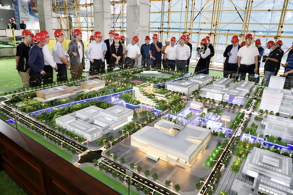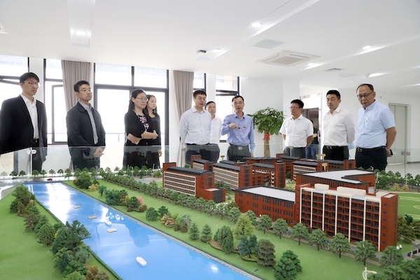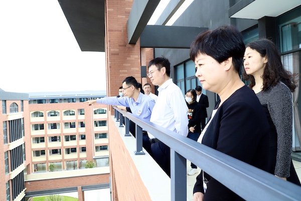 金东寒一行首先来到项目建设现场,察看项目建设进展,了解学生宿舍、食堂等建设细节,并察看建筑外墙、地面等材料样板,肯定了项目高标准、高品质的建设水平,并希望校区教学楼、实验楼等加快建设、早日投入使用,为学生提供良好的学习生活环境。