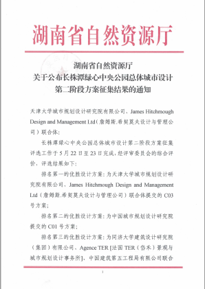 7月6日讯,近日,由黄晶涛教授、朱玲教授领衔,联合James Hitchmough(英)教授,天津大学建筑设计规划研究总院有限公司和詹姆斯西契莫夫设计与管理公司所组成的联合体,在长株潭绿心中央公园总体城市设计国际方案征集中,经过资格预审与两轮方案比选的激烈竞争,在国内外多家设计机构的竞标中脱颖而出,被选为优胜设计方案。