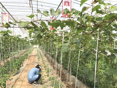 帮扶干部王帆说:“这上面结的是葡萄,下面种的是菜,我们是立体种植。”据介绍,目前已栽种800余株丛林玫瑰、宝光、脆光和蓝宝石等优质葡萄品种树苗,成活率98%以上。此外每年还陆续种植了多茬蔬菜,包括小白菜、菠菜、茄子、西红柿、辣椒、黄瓜等多个品种。