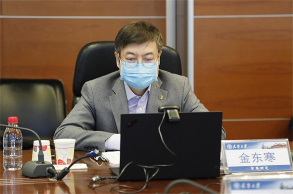 金东寒代表学校向医学部全体师生表示亲切问候,向战斗在疫情防控一线的附属医院医务工作者致以崇高敬意。他对学习领会总书记回信精神提出几点意见:一是要认真学习领会习近平总书记的回信精神,深入落实立德树人根本任务;二是要深化医工结合,加快推进新医科建设;三是要服务健康中国战略,加快推进人口健康领域关键核心技术的科研攻关。他强调,希望大家认真学习回信精神,并切实转化为推动医学教育改革发展的强大动力,加快培养具有仁心仁术的卓越医学人才,为促进国家卫生与健康事业发展贡献更多的“天大”力量。