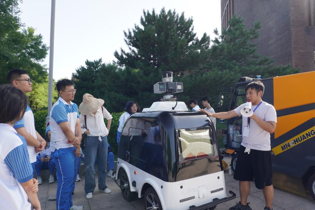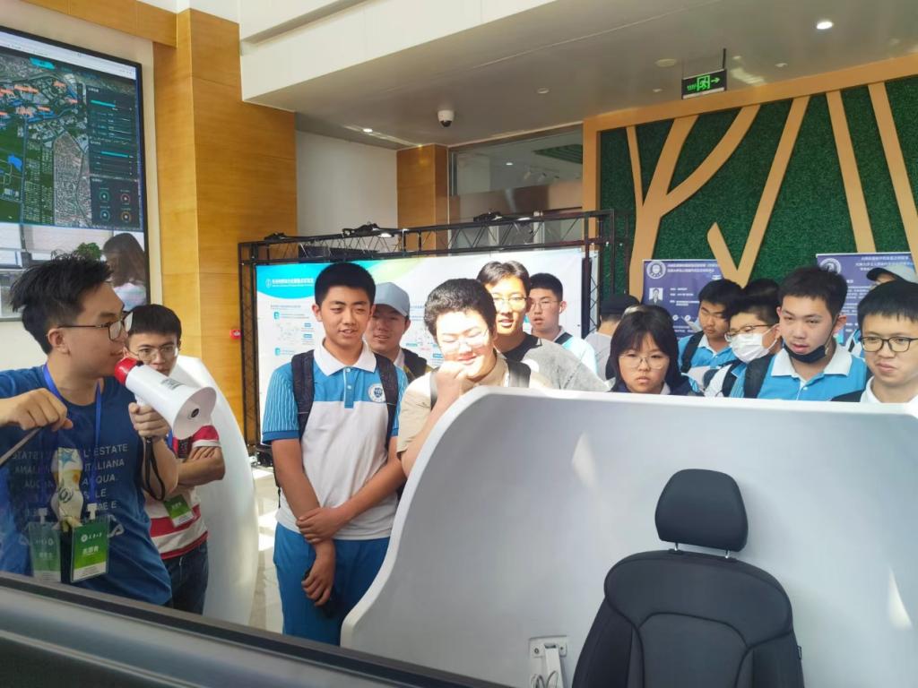 在此次科普活动过程中,这些同学全程跟在谢辉老师身边,谢辉老师耐心的为每一位提出问题的同学答疑解惑,讲解无人驾驶相关的知识。高一三班的班长王孟哲同学说:“我们高一升高二的学生,正面临6选3选课阶段,通过来科普基地研学,了解了新工科的教育教学机制,不仅对我们明确学科选择方面有指导性帮助,也加深了我们对大学教育的向往,增加了学习的动力。”