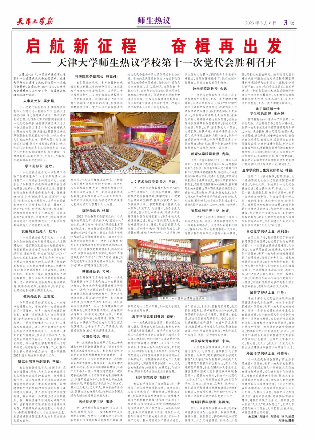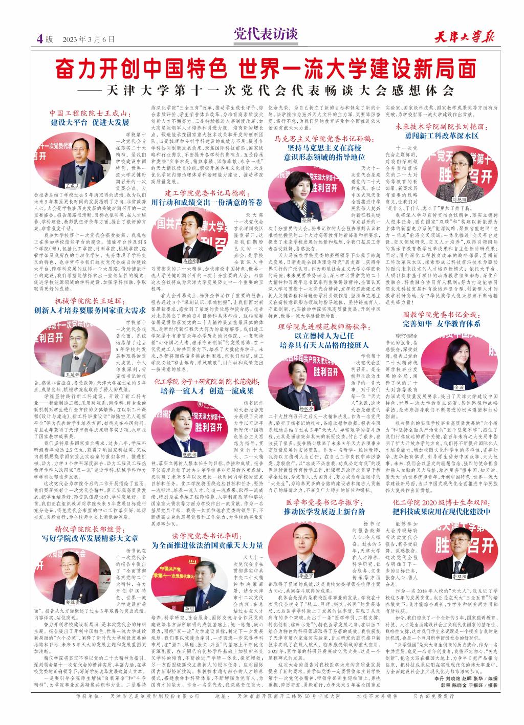 ●奋力开创中国特色 世界一流大学建设新局面——天津大学第十一次党代会代表畅谈大会感想体会