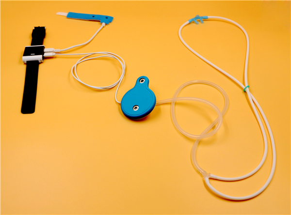 天津大学医学工程与转化医学研究院联合企业攻关研发出“可穿戴式组合体征智能监测系统”。从外观上看,这套系统的硬件模块是一组能佩戴在身体各处的轻便检测仪,患者穿戴后可以正常活动。这些检测仪可实时监测出患者血氧含量、呼吸频率、心跳速度等生理指标,还可以实时提取患者体位变化以及咳嗽带来的气流阻力变化。监测数据可通过蓝牙传输至手机App,并通过手机传输至云端系统,系统能够集合临床诊断原则,提取出呼吸疾病相关数据,初步判断患者的病情状态与变化趋势。这样,无论患者身处医院、居家或留观点,医生都能在办公室远程实时了解患者病情发展态势。