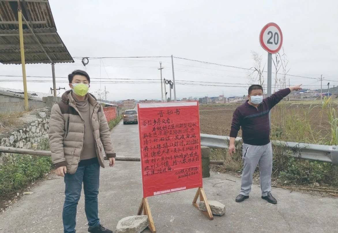 我校选调生宋文杰在劝返点前执勤(左1)