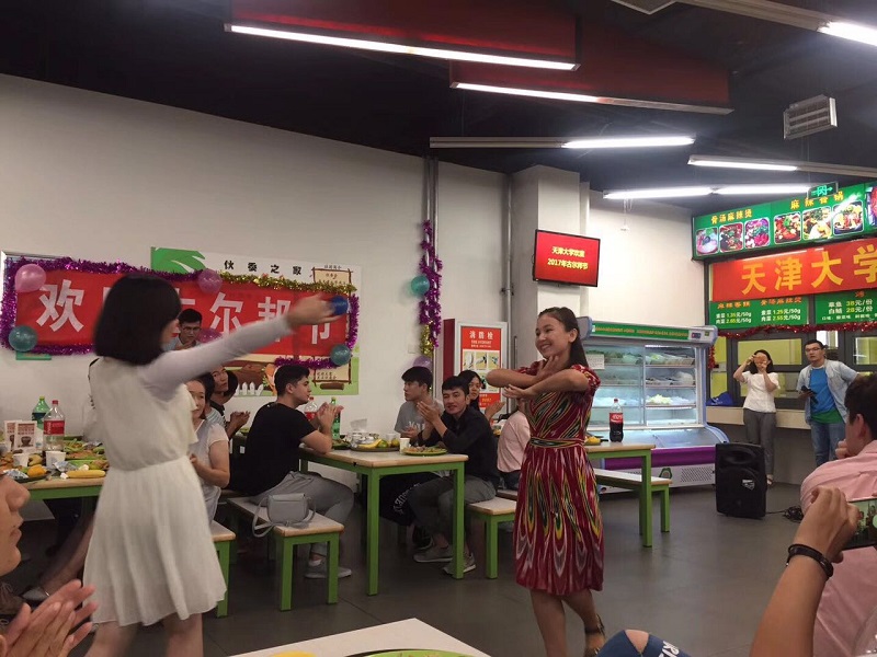 本站讯(通讯员 陈乐)9月1日下午,天津大学北洋园校区清真食堂洋溢着喜庆祥和的节日氛围,来自维吾尔族、哈萨克族、回族、塔塔尔族等170余名少数民族学生欢聚一堂,载歌载舞,共度古尔邦节。