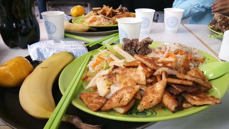 学校不仅免费提供接送车将老校区的学生集中到新校区,还在清真食堂提供免费的新疆美食,包括手抓羊肉、抓饭、烤包子、烤馕等,同时还提供水果和牛奶,让远在异乡的同学们感受到如家般的温暖。老师们坐在同学们中间,共同进餐并亲切交谈。