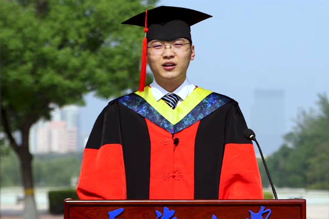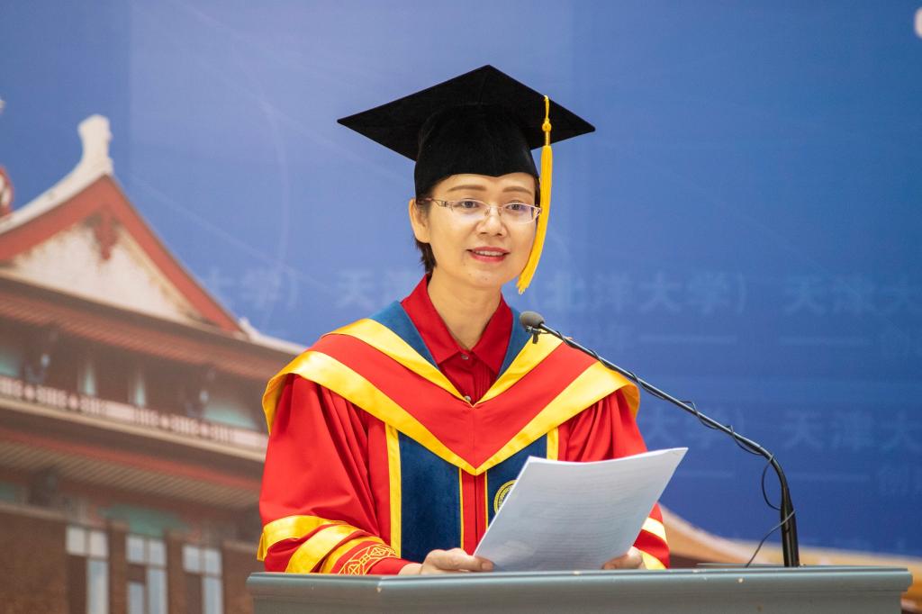 “天津大学是宽广的舞台,更是我的‘练功台’,在这里我迈入了神圣的科学殿堂!”毕业生代表、材料学院2015级直博生张宇在发言中与现场师生分享了自己在天津大学开启科研生涯、一路攻坚克难的求学励志故事:研发耐热材料、等待持续8900小时的实验、去往梁家河重温习近平总书记奋斗经历、助力扶贫“直播带货”……母校给予的宝贵经历让他思考——未来应当在哪片热土耕耘与收获?“爱国奉献,天大品格。我立志扎根家乡,服务新时代推进西部大开发事业,为内蒙古繁荣稳定高质量发展努力,为内蒙古各族人民幸福生活奋斗!”
