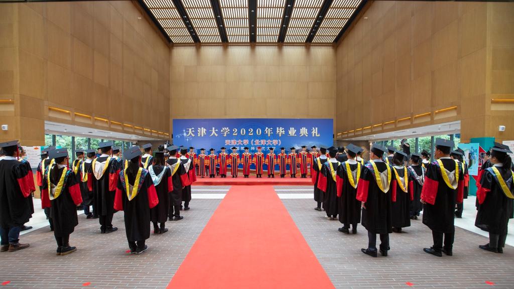 毕业典礼首次采用线上线下结合的方式。全体校领导、教师代表、校友代表和毕业生代表等在校内现场出席。2020届毕业生、家长亲友及广大师生校友则通过天津大学官方微博、B站、抖音、快手、微视以及人民视频、央视频、学习强国、新华网等平台,以观看网络直播的方式参加这场别开生面的典礼仪式。典礼由校党委副书记雷鸣主持。