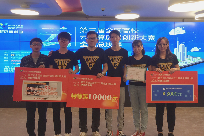 本站讯(通讯员 董会丽)4月22日,第三届全国高校云计算应用创新大赛总决赛在南京江北新区产业技术创研园开幕。大赛总报名人数超过1900人,从全国的489支队伍中,海选出来自全国各地近138所高校的55支队伍进入决赛。这55支“实力派”,经过现场演讲,答辩,评委会评比等激烈角逐之后,其比赛结果于23日下午公布,天津大学计算机学院先进网络实验室学生团队凭借“@Cloud”项目夺得大赛特等奖。