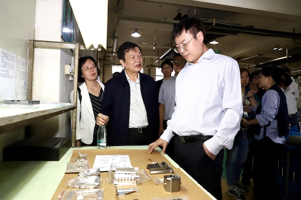 本站讯(记者文并图 赵习钧)10月13日,中国工程院院士、天津大学校长金东寒一行到校友企业福建上润精密仪器有限公司调研。天津大学党委副书记赵美蓉陪同调研。