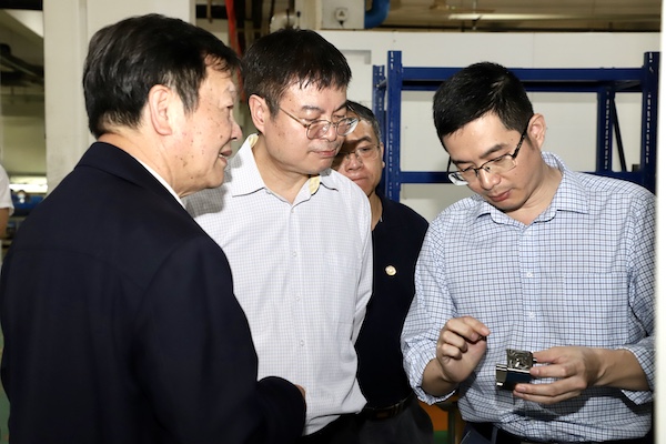 在福建上润精密仪器有限公司董事长黄训松陪同下,金东寒走进企业展厅,了解企业发展历程、产业布局、技术研发和生产情况。他还走进工程中心车间和传感变送器车间详细了解高端传感器等高精尖产品生产工艺等情况。