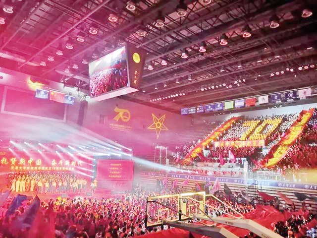 礼赞祖国是“打开青春”的最好方式。4月21日晚,全国数百所高校共同参与的“放飞梦想——天津大学青春歌会”在天津大学求实会堂拉开帷幕。我校8个青春科研团队与数千名年轻学子齐聚一堂,用激昂嘹亮的歌声庆祝中华人民共和国成立70周年,纪念五四运动100周年。五四期间,天大学子还与全国数十所高校学子开展线上拉歌活动、参加了央视《我们都是追梦人——2019“五月的鲜花”全国大中学生文艺会演》、天津市迎五四百年汇演等活动,集中收看了全国纪念五四运动100周年大会实况。学校召开了纪念五四百年座谈会。